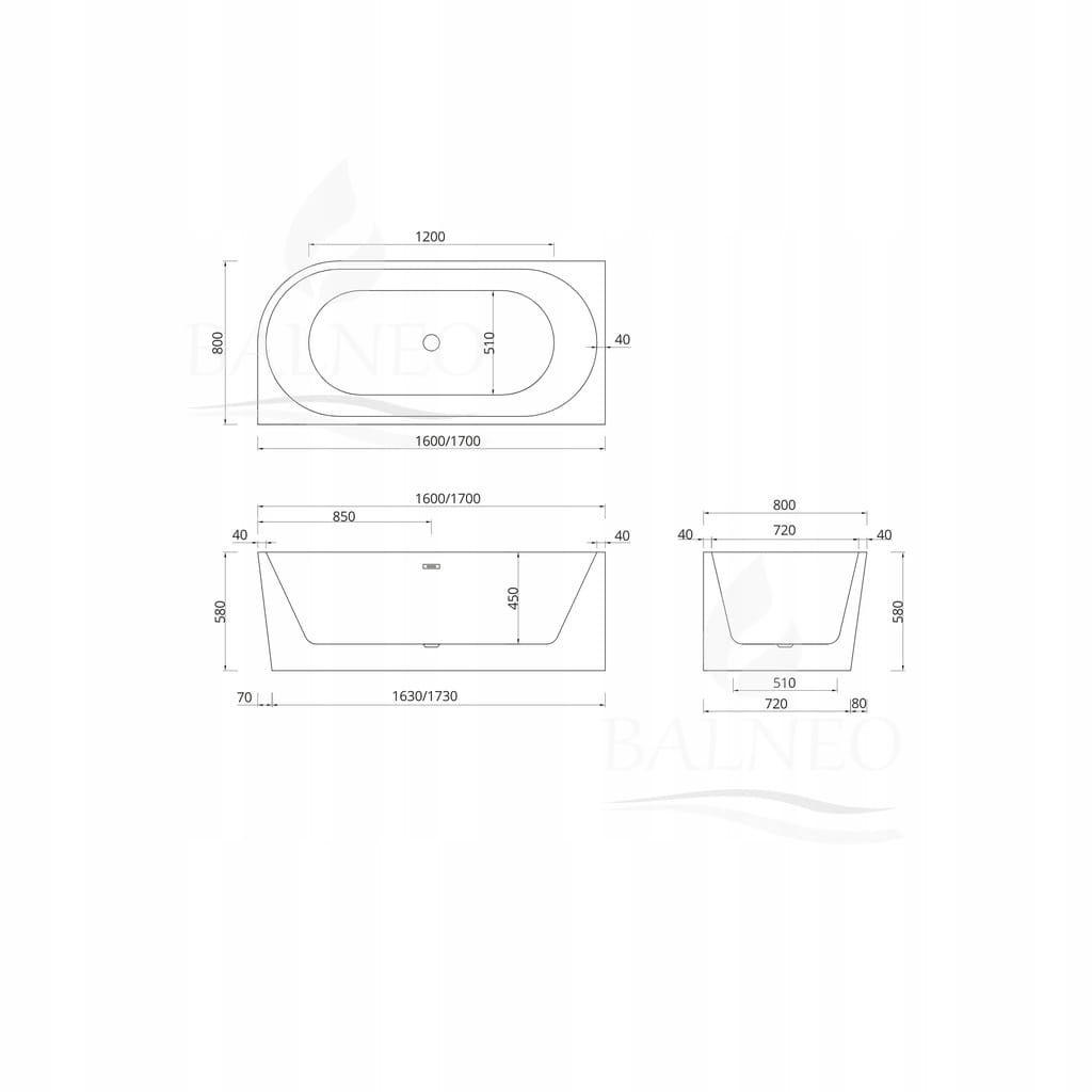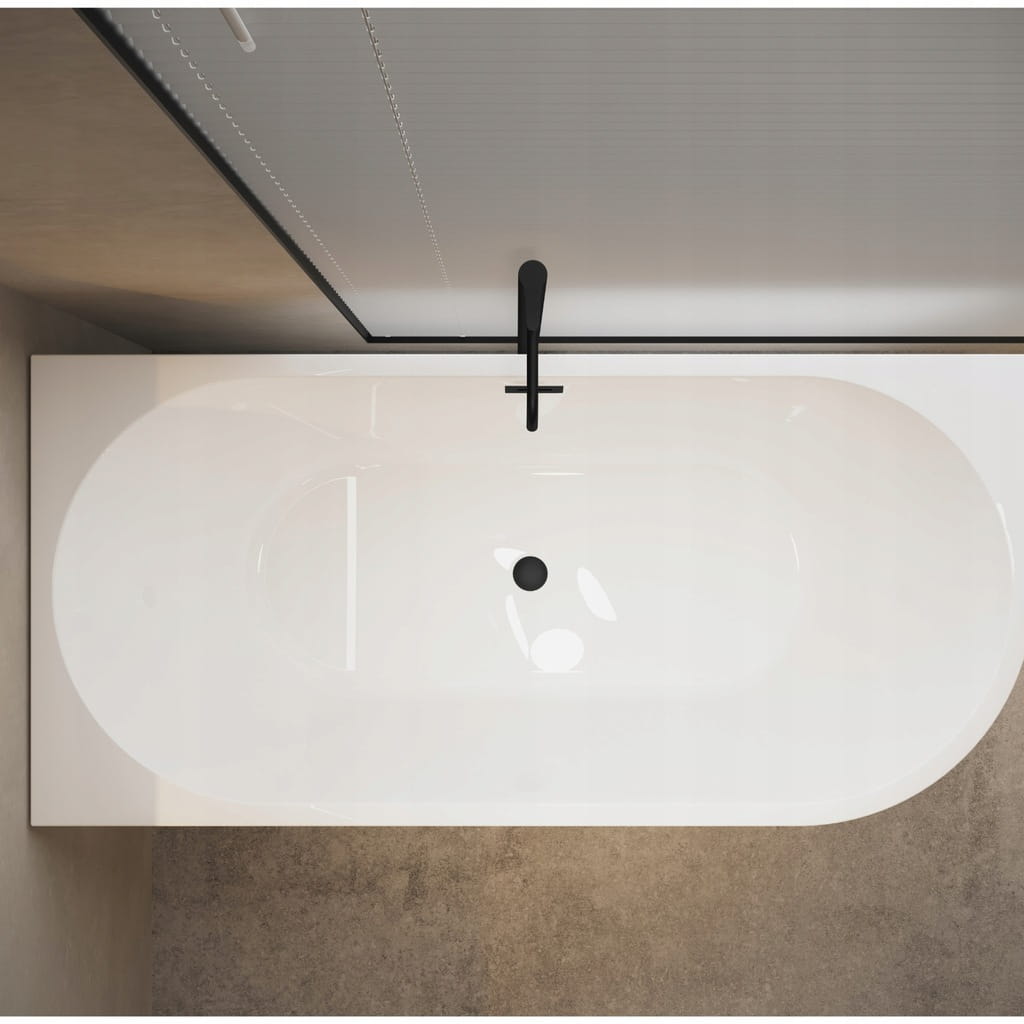 BALNEO WANNA WOLNOSTOJĄCA NAROŻNA LEWA 170x80 cm CZARNY KOREK + PRZELEW
