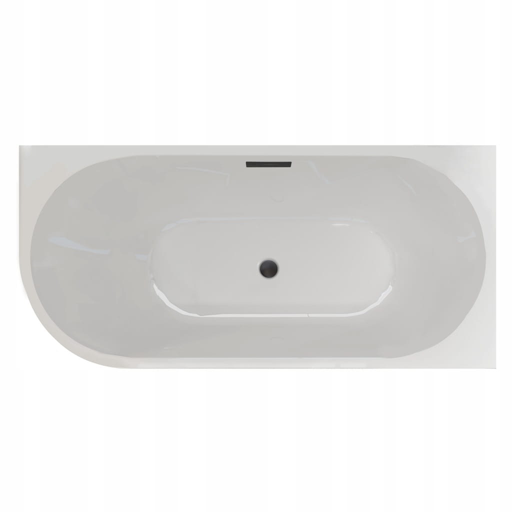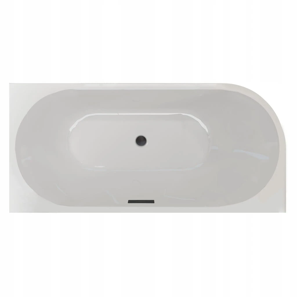 BALNEO WANNA WOLNOSTOJĄCA NAROŻNA PRAWA 160x80 cm CZARNY KOREK + PRZELEW
