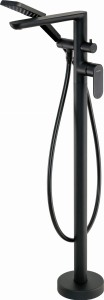 Bateria wannowa wolnostojąca z zestawem prysznicowym z kompleksowej linii Alpinia znakomicie pasuje to łazienki modernistycznej z wolnostojącą wanną. Jej wysokość i podłogowy sposób montażu nadaje pomieszczeniu estetycznego i subtelnego charakteru. Dzięki matowemu wykończeniu nero oraz gładkiej powierzchni bateria będzie zachwycać użytkownika swoim wyglądem przez lata. Ponadto przedstawiona stojąca bateria wannowa została zaopatrzona w mechaniczny, ceramiczny przełącznik natrysku.