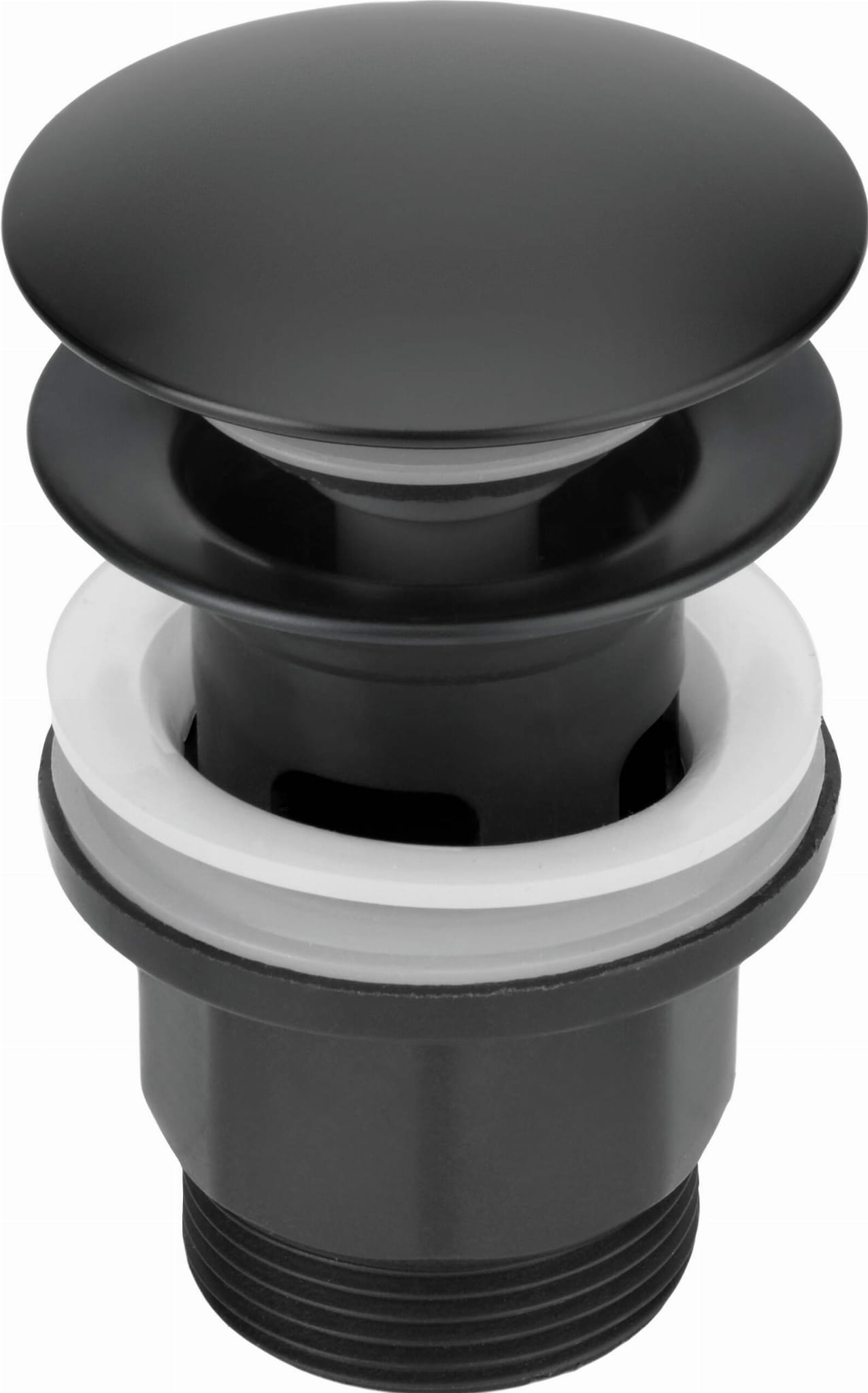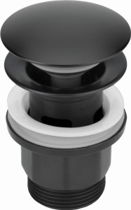 Okrągły korek click-clack przeznaczony jest do bidetów oraz umywalek z przelewem. Otwarcie i zamknięcie odpływu następuje przez naciśnięcie korka palcem. Produkt posiada eleganckie, czarne wykończenie, które idealnie współgra z armaturą w tym samym kolorze.