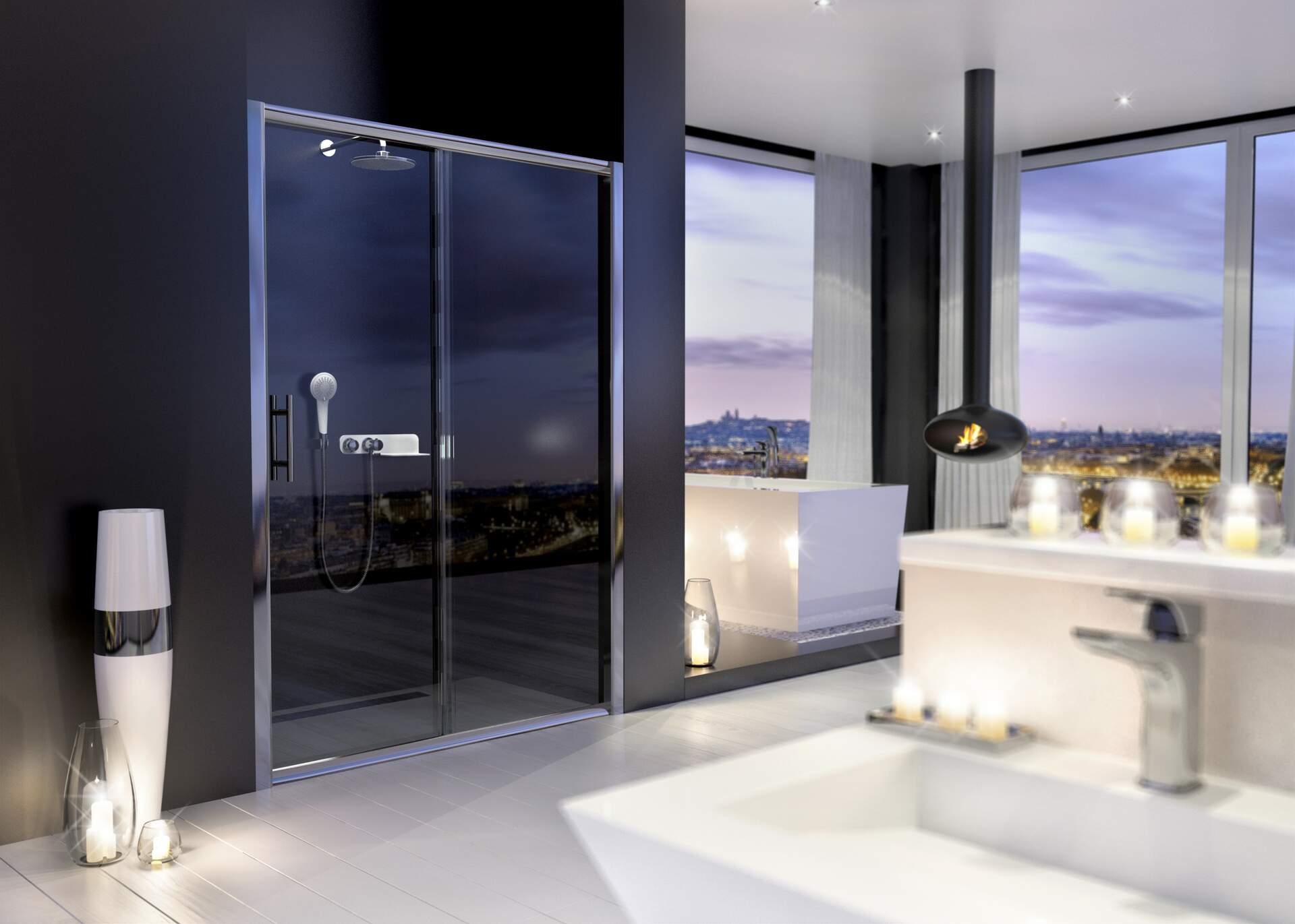 Drzwi prysznicowe przesuwne CYNIA są idealne do łazienek, w których znajduje się osobna wnęka natryskowa, ale nie tylko. Produkt zamontujesz także przy ściance bocznej. Co więcej, istnieje w tym przypadku możliwość montażu na brodziku bądź bezpośrednio na płytkach. Drzwi prysznicowe wnękowe wyróżniają się też pięknym designem. Dzięki temu wpasują się w pozostałe elementy wyposażenia łazienki niezależnie od reprezentowanego stylu. Nieważne czy będzie to aranżacja klasyczna, czy nowoczesna, gdyż do każdej będą doskonałe. Wśród atutów drzwi można wymienić też wytrzymałość i mocną konstrukcję. Szkło hartowane wykazuje dużą odporność na zadrapania, uszkodzenia, wysoką temperaturę i wilgotność. Z kolei powłoka hydrofobowa Active Cover skutecznie odpycha cząsteczki wody i zabezpiecza przed nadmiernym gromadzeniem się osadu wapiennego. Ułatwia też usuwanie zabrudzeń i sprzątanie. Nie należy też zapominać o obecności podwójnych rolek łożyskowych, które gwarantują ciche i wygodne zamykanie. Drzwi zamontujesz z jedną lub dwiema ściankami stałymi. Są to drzwi wnękowe ale przy zakupie ścianki Cynia można stworzyć kabinę narożną.