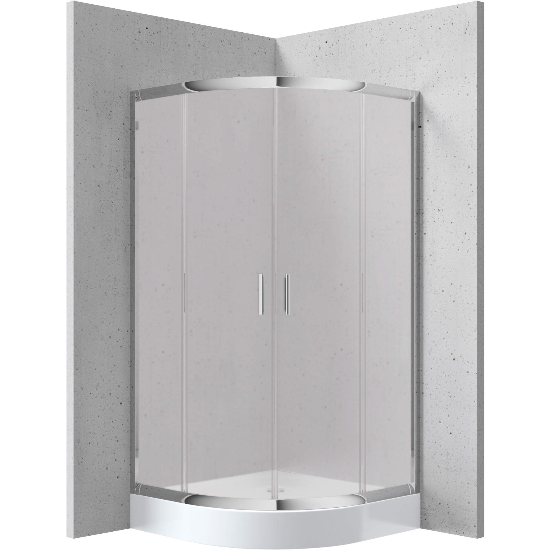 Półokrągła kabina prysznicowa Funkia przykuwa uwagę swoim designem. Szronione szkło hartowane w połączeniu z błyszczącym chromem to połączenia jakości i piękna. Może być zamontowana na brodziku lub bezpośrednio na płytkach. Produkt wyposażony został w system cichego zamknięcia i wypinane dolne rolki.