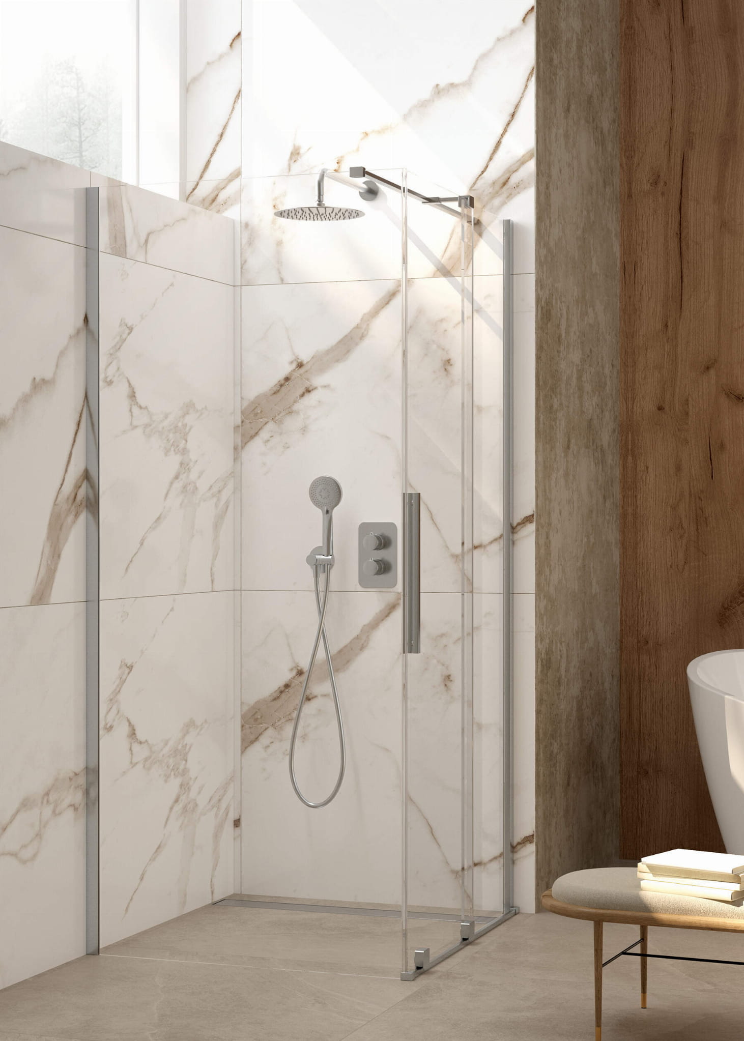 - Możliwość łączenia z drugą ścianką przesuwną i ścianką prysznicową walk-in Prizma