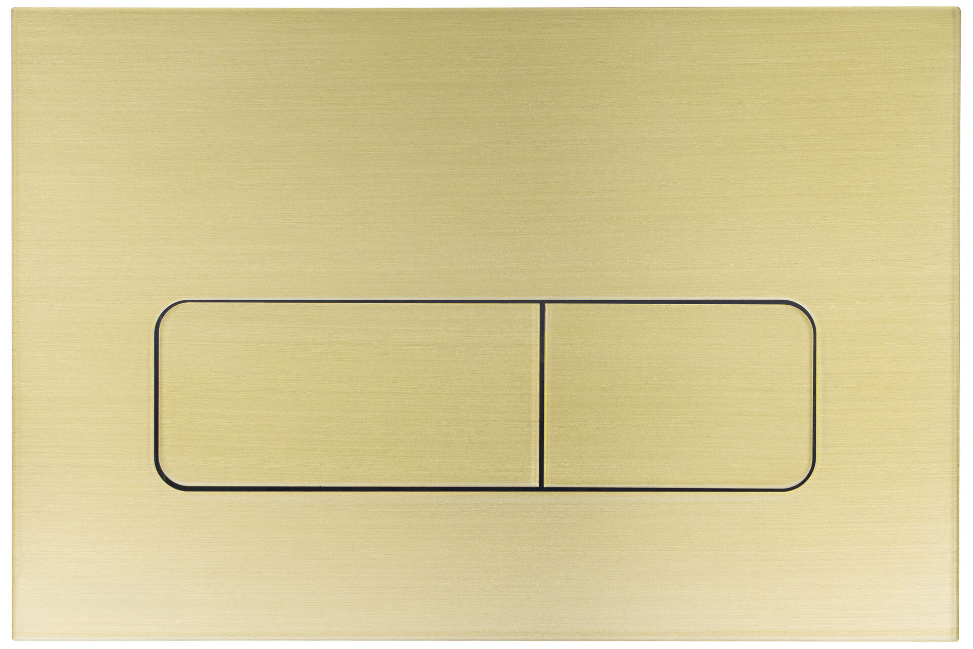 Przycisk spłukujący wykonany został z wytrzymałej stali nierdzewnej i zakończony eleganckim wykończeniem w kolorze złota szczotkowanego. To doskonałe rozwiązanie dla osób ceniących spójność i estetykę w swojej łazience. Jego design harmonizuje z armaturą i dodatkami w tym samym kolorze, dodając łazience niepowtarzalnego uroki i elegancji.Ultra płaska konstrukcja przycisku gwarantuje, że idealnie przylega on do ściany, co nie tylko podkreśla nowoczesny charakter łazienki, ale także ułatwia utrzymanie czystości i porządku.Innym walorem przycisku jest funkcjonalność dwóch opcji spłukiwania, które pozwalają użytkownikowi na świadome zarządzanie zużyciem wody. Produkt przeznaczony jest do montażu przy stelażach podtynkowych.