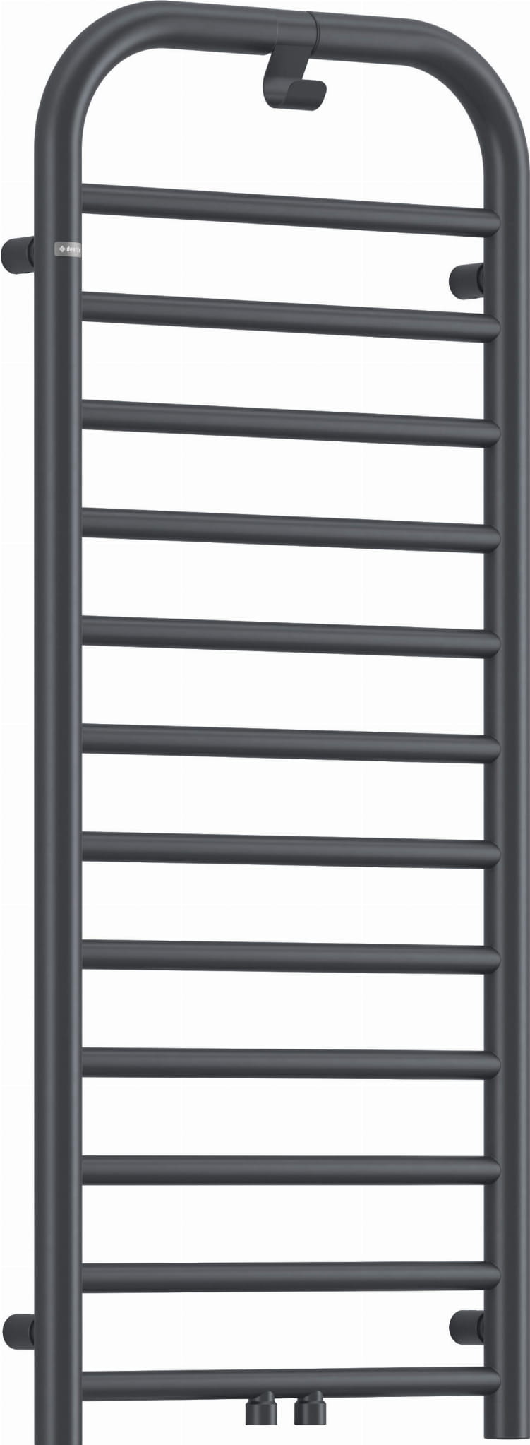 Stylowy grzejnik łazienkowy o wymiarach 1210x500, charakteryzuje się gładkimi liniami i wyjątkowym wykończeniem w kolorze Titanium. Grzejnik posiada praktyczny haczyk na ręcznik lub szlafrok. Jest to model hybrydowy: wodno-elektryczny, umożliwiający zamontowanie opcjonalnej grzałki 400W, która zapewni dodatkowe ogrzewanie lub suszenie ręczników poza sezonem grzewczym. Do grzejnika należy dokupić zawór. Zarówno opcjonalna grzałka, jak i niezbędny zawór dostępne są w tym samym kolorze co grzejnik.