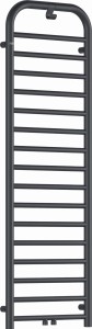 Nowoczesny grzejnik łazienkowy w kolorze titanium, o wymiarach 1570x500, cechuje się obłymi kształtami i oryginalnym wykończeniem. Wyposażony jest w praktyczny haczyk na ręczniki lub szlafrok. To hybrydowy model: wodno-elektryczny, który pozwala na montaż grzałki 600W, umożliwiającej dodatkowe ogrzewanie lub suszenie ręczników poza sezonem grzewczym. Zarówno opcjonalna grzałka, jak i niezbędny zawór dostępne są w tym samym kolorze co grzejnik.