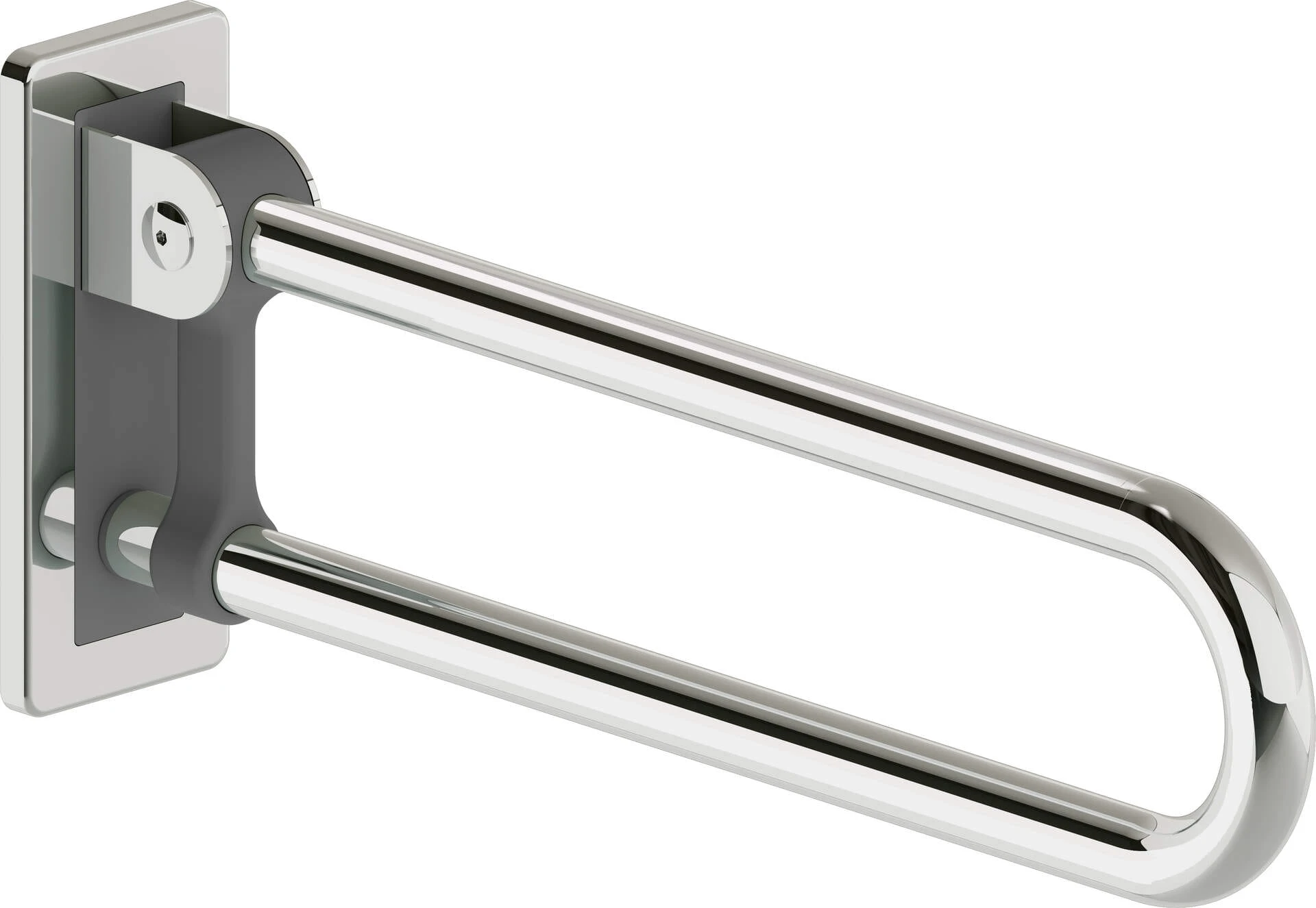 Uchwyt składany przyścienny o długości 60 cm. Produkt wykonany jest ze stali nierdzewnej. Wyposażony został w mechanizm uchylny w kolorze antracytowym. W komplecie zestaw montażowy do twardego podłoża (ściany z pełnej cegły/ betonu). Maksymalny udźwig uchwytu 150 kg. Produkt jest wyrobem medycznym.
