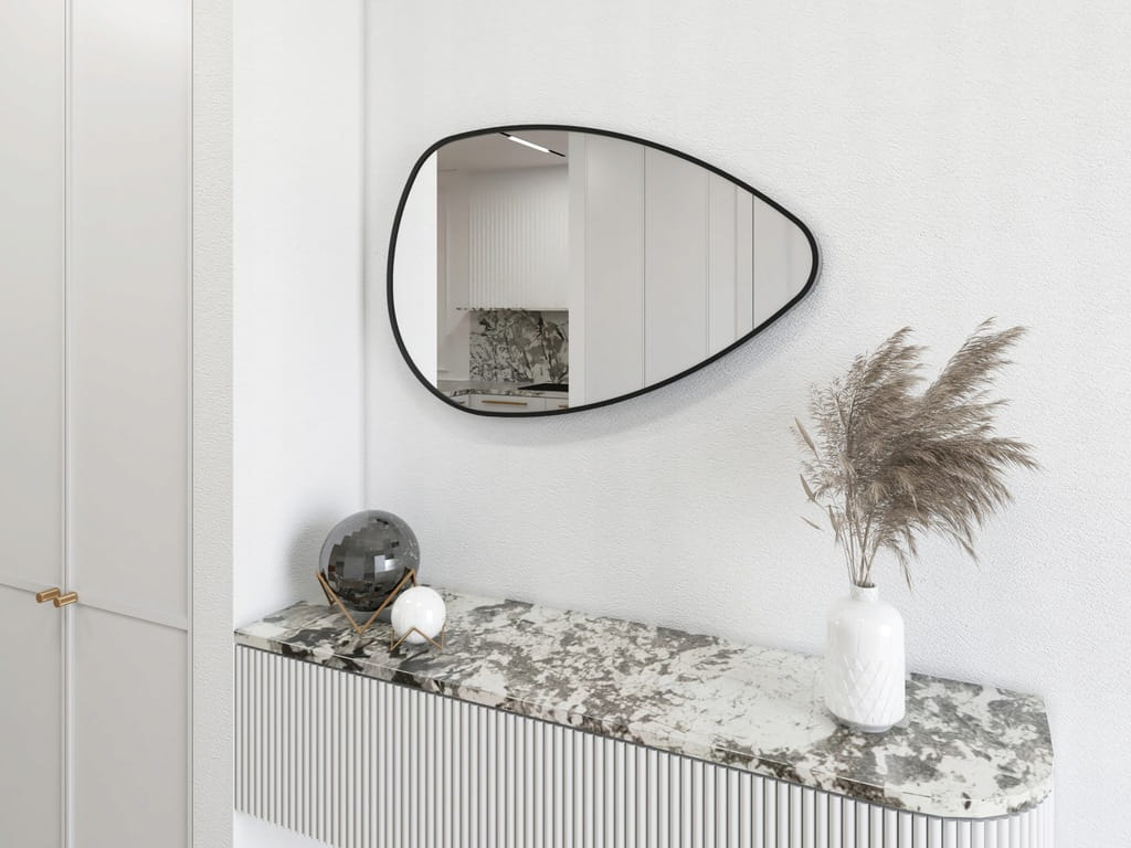 Lustro w czarnej ramie wykonanej z aluminium szczotkowanego. Głębokość ramy - 4 cm.