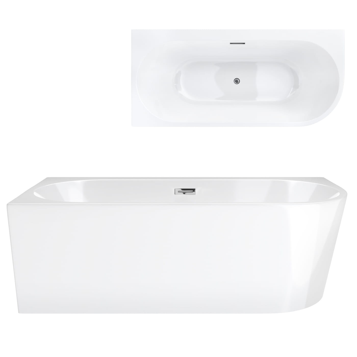 Wanna wolnostojąca narożna Corsan INTERO 150 x 74 z szeroką krawędzią Montaż lewostronny Korek klik-klak Chrom