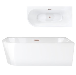 Wanna wolnostojąca narożna Corsan INTERO 160 x 74 z szeroką krawędzią Montaż prawostronny Korek klik-klak Miedziany / Różowe Złoto
