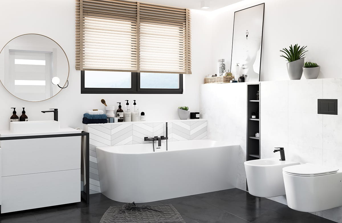 Wanna wolnostojąca narożna Corsan INTERO 160 x 75 Montaż prawostronny Korek klik-klak Chrom