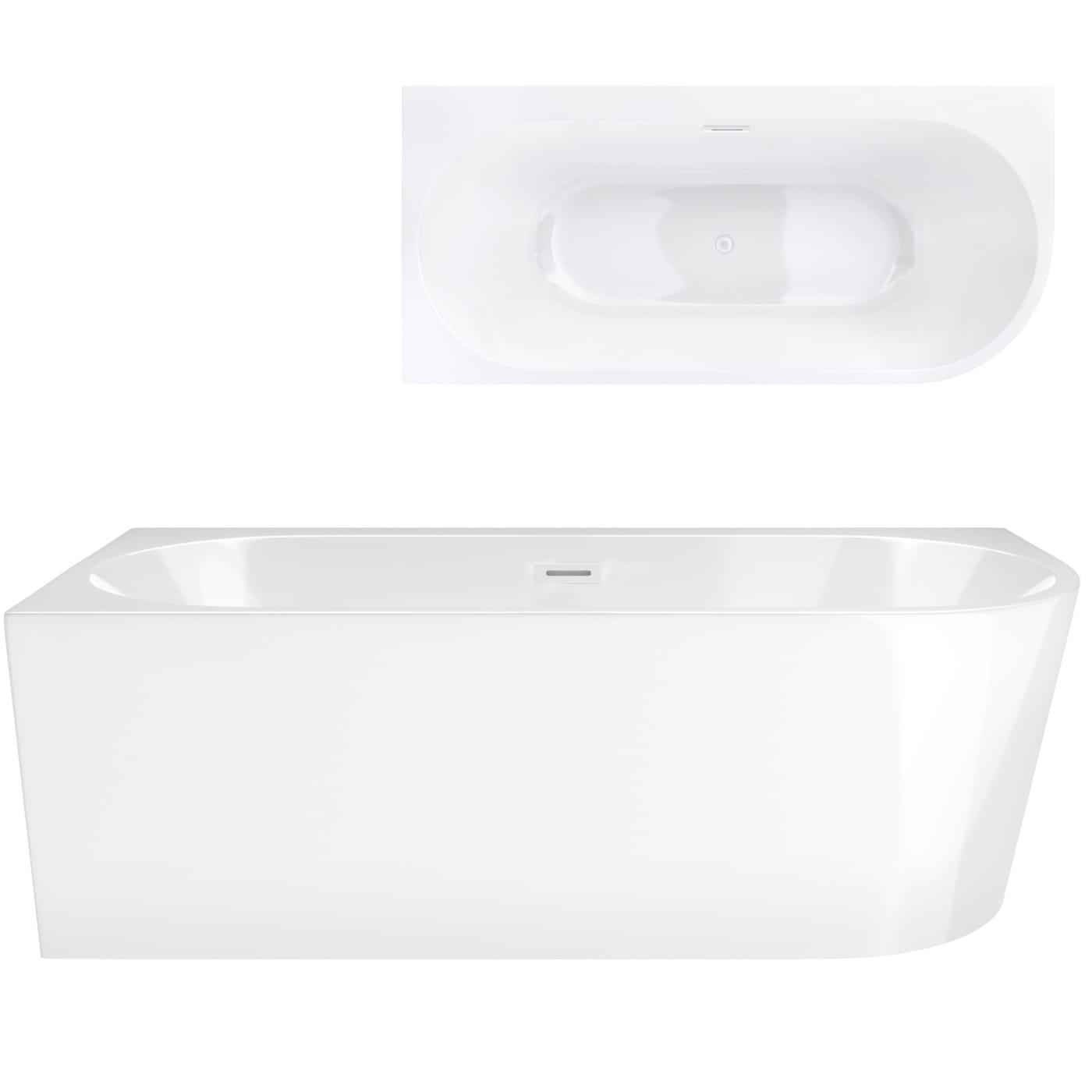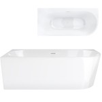 Wanna wolnostojąca narożna Corsan INTERO 170 x 80 z szeroką krawędzią Montaż lewostronny Korek klik-klak Biały