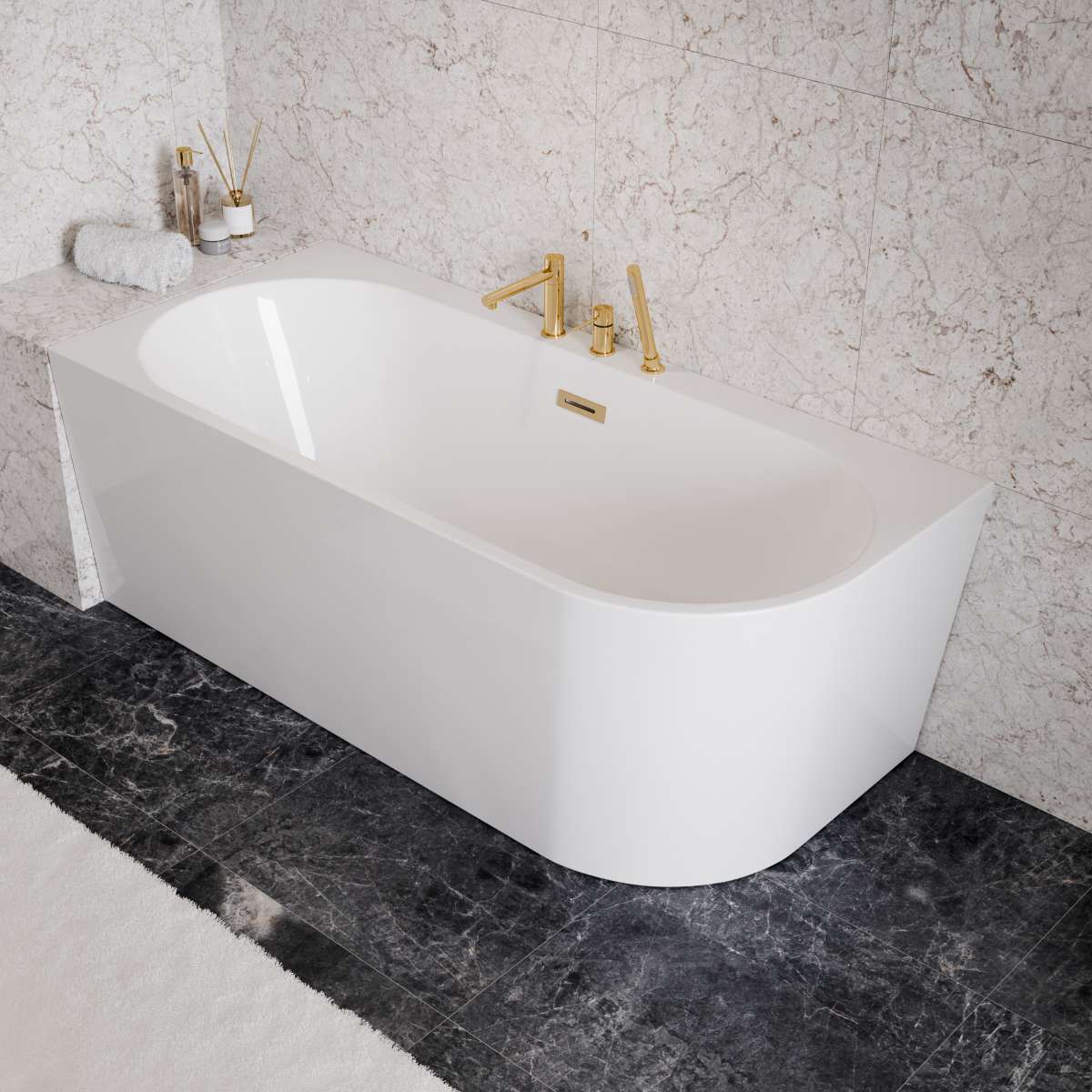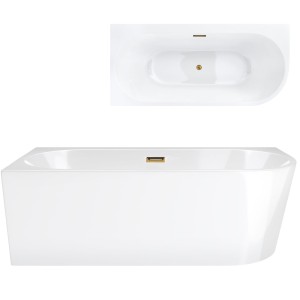 Wanna wolnostojąca narożna Corsan INTERO 170 x 80 z szeroką krawędzią Montaż lewostronny Korek klik-klak Szczotkowane Złoto