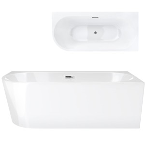 Wanna wolnostojąca narożna Corsan INTERO 170 x 80 z szeroką krawędzią Montaż prawostronny Korek klik-klak Chrom