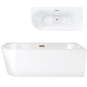 Wanna wolnostojąca narożna Corsan INTERO 170 x 80 z szeroką krawędzią Montaż prawostronny Korek klik-klak Złoty