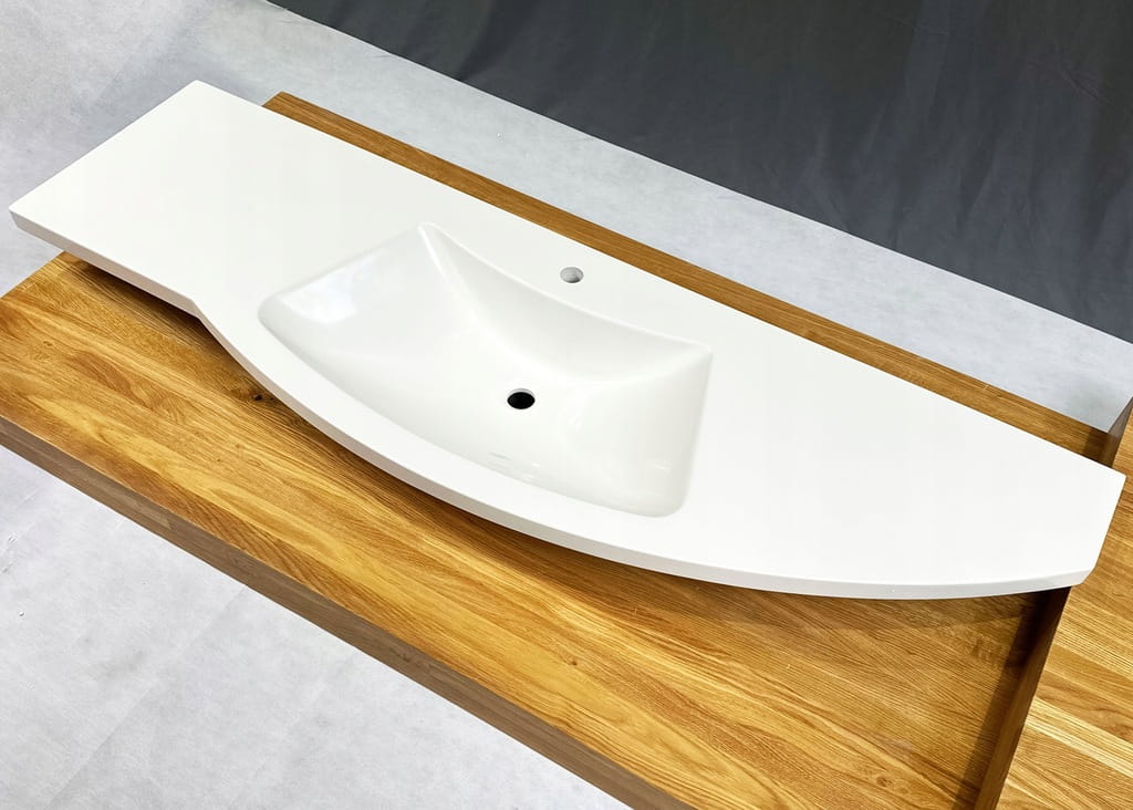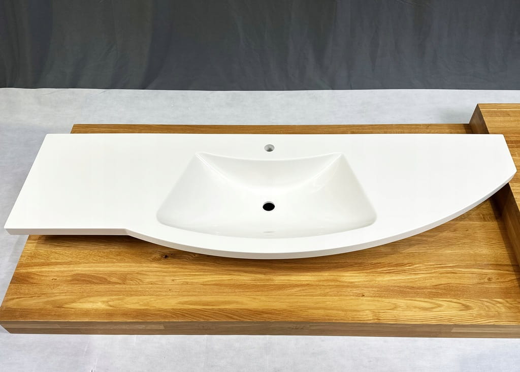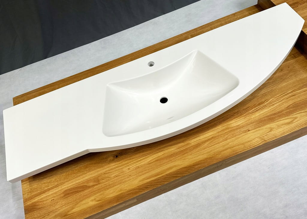Umywalka meblowa 168 cm biała z blatem - Marmex, centralna niecka, maksymalna przestrzeń