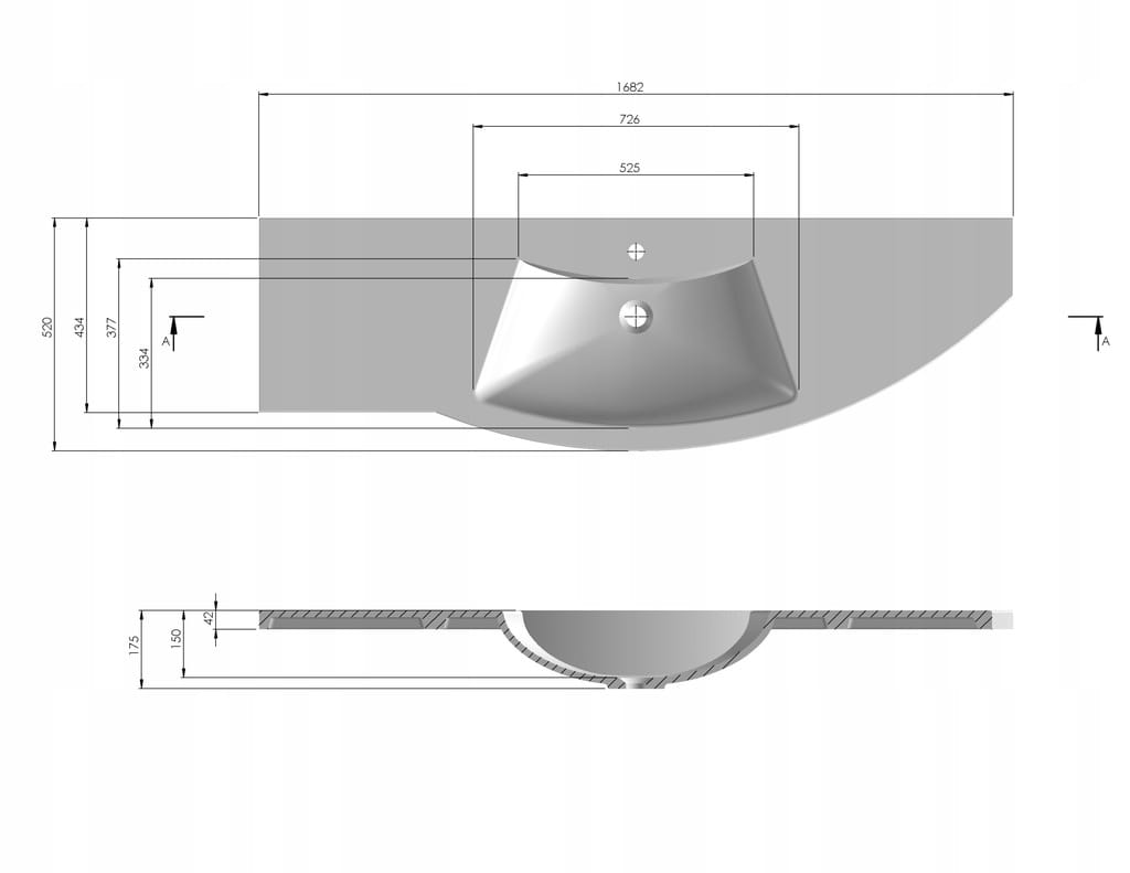 Ideal.X Umywalka meblowa, asymetryczna, biała, 168 x 52 cm
