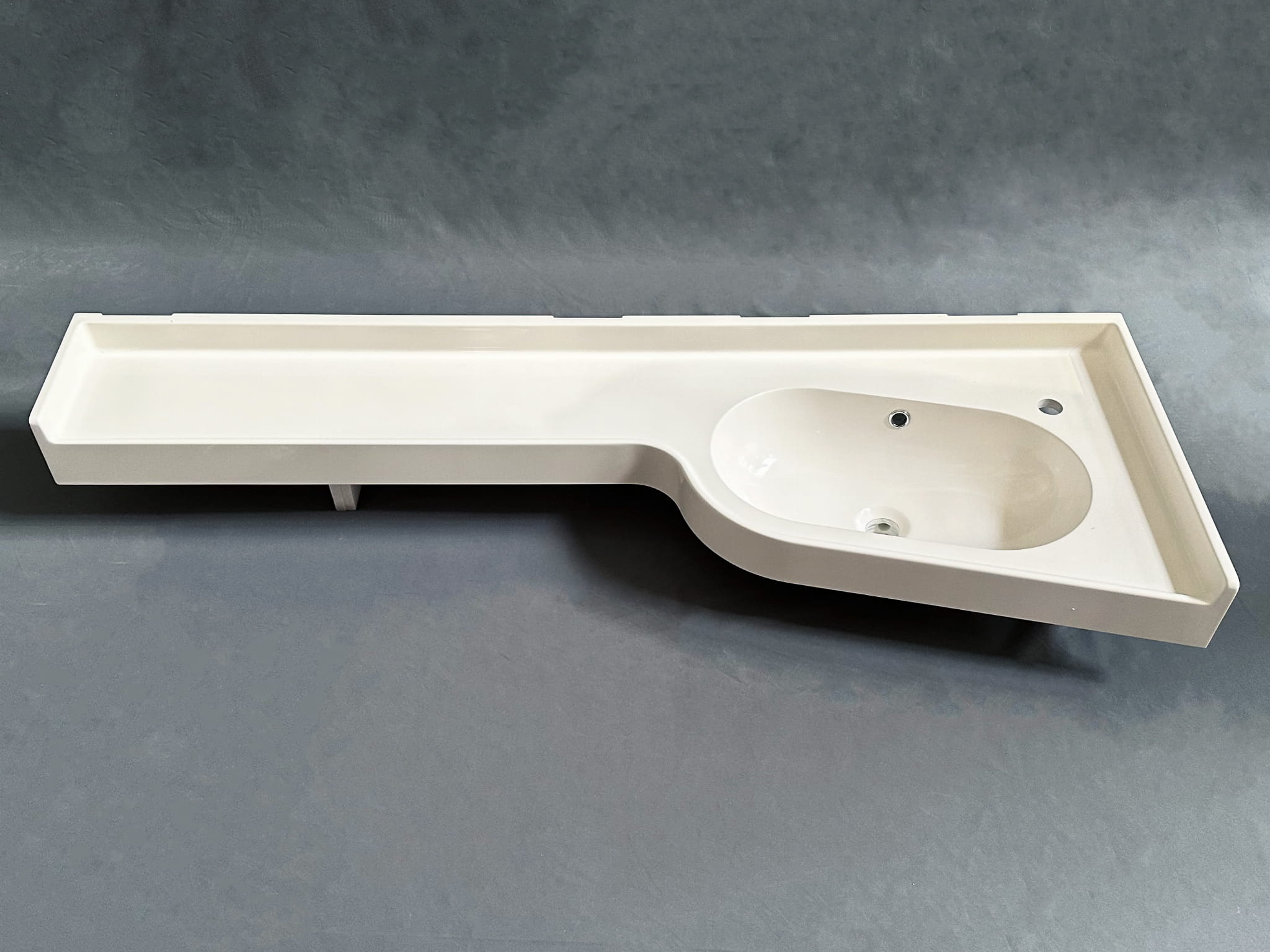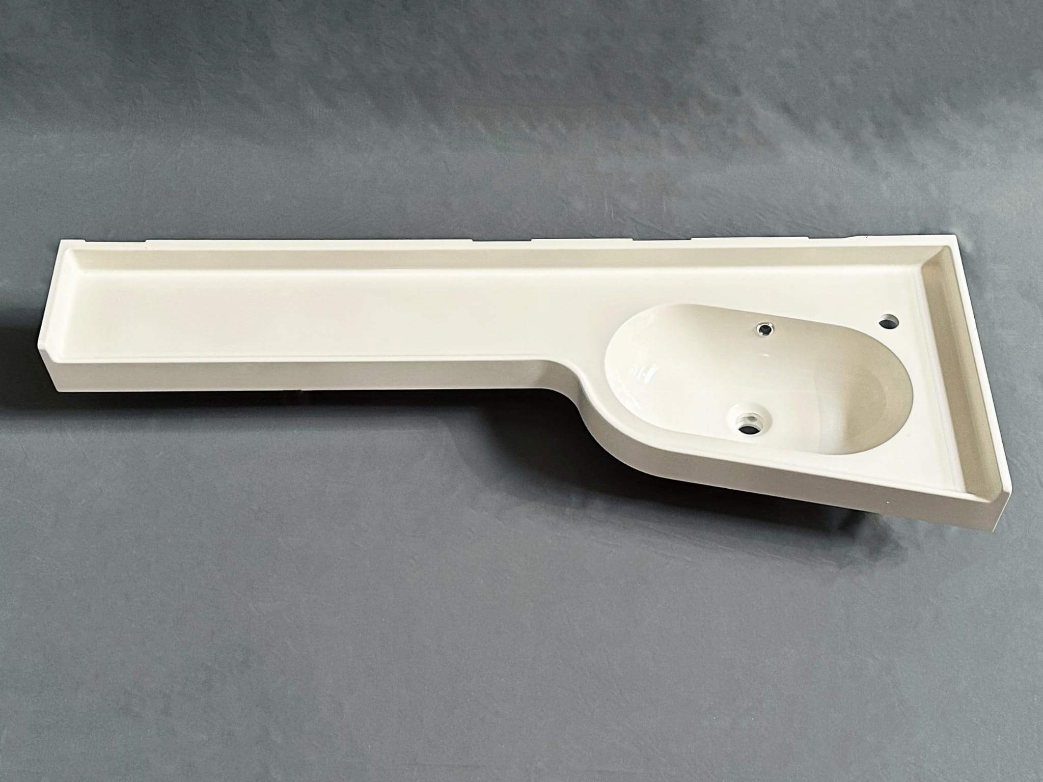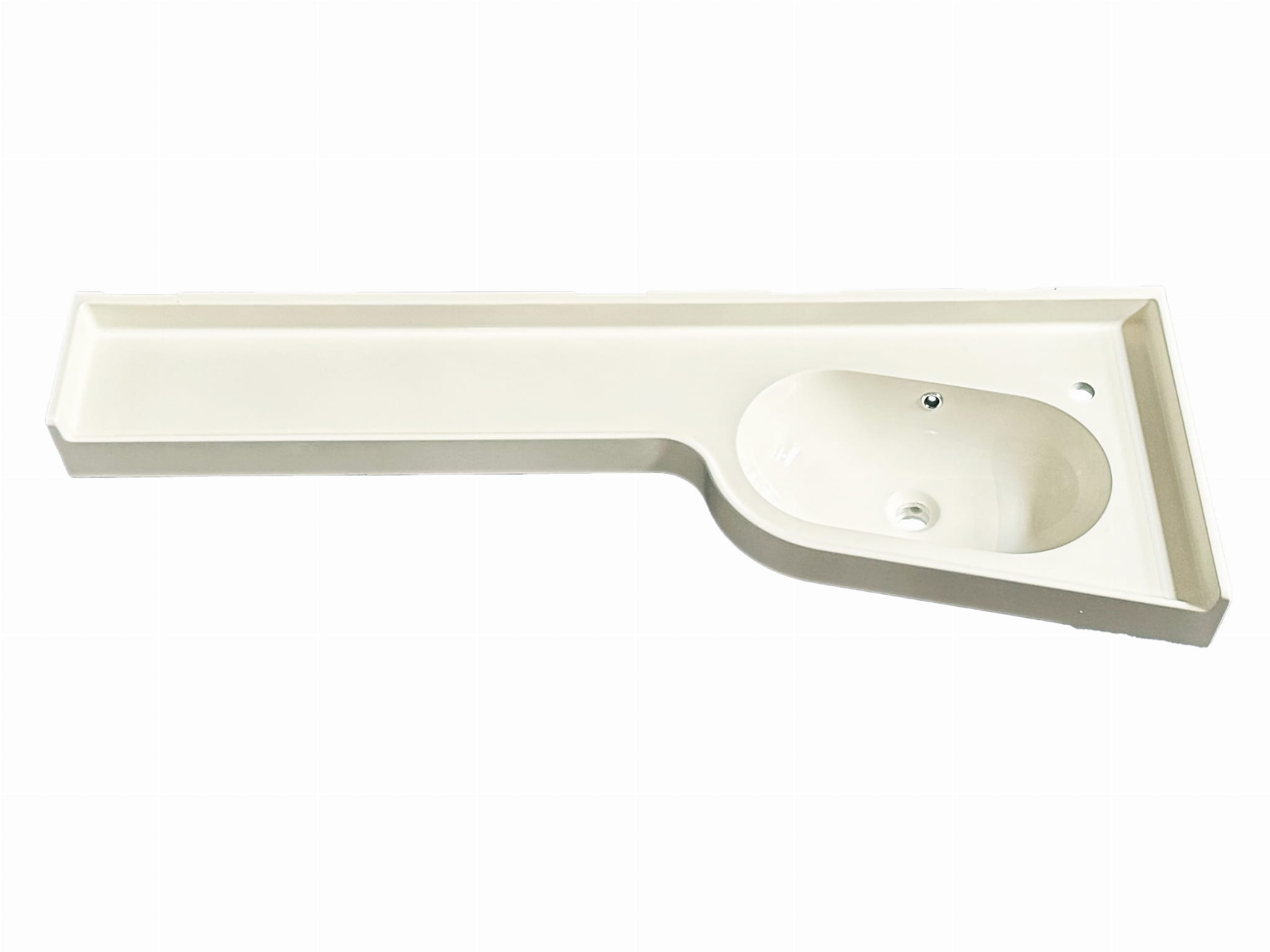 Jedna niecka, blat roboczy i nieregularny zarys całego modelu sprawiają, że produkt dobrze odnajduje się w łazienkach premium, apartamentach oraz realizacjach, w których strefa umywalkowa ma być wygodna, efektowna i czytelnie zaprojektowana. To propozycja dla osób, które szukają szerokiej umywalki meblowej z bardziej indywidualnym charakterem.