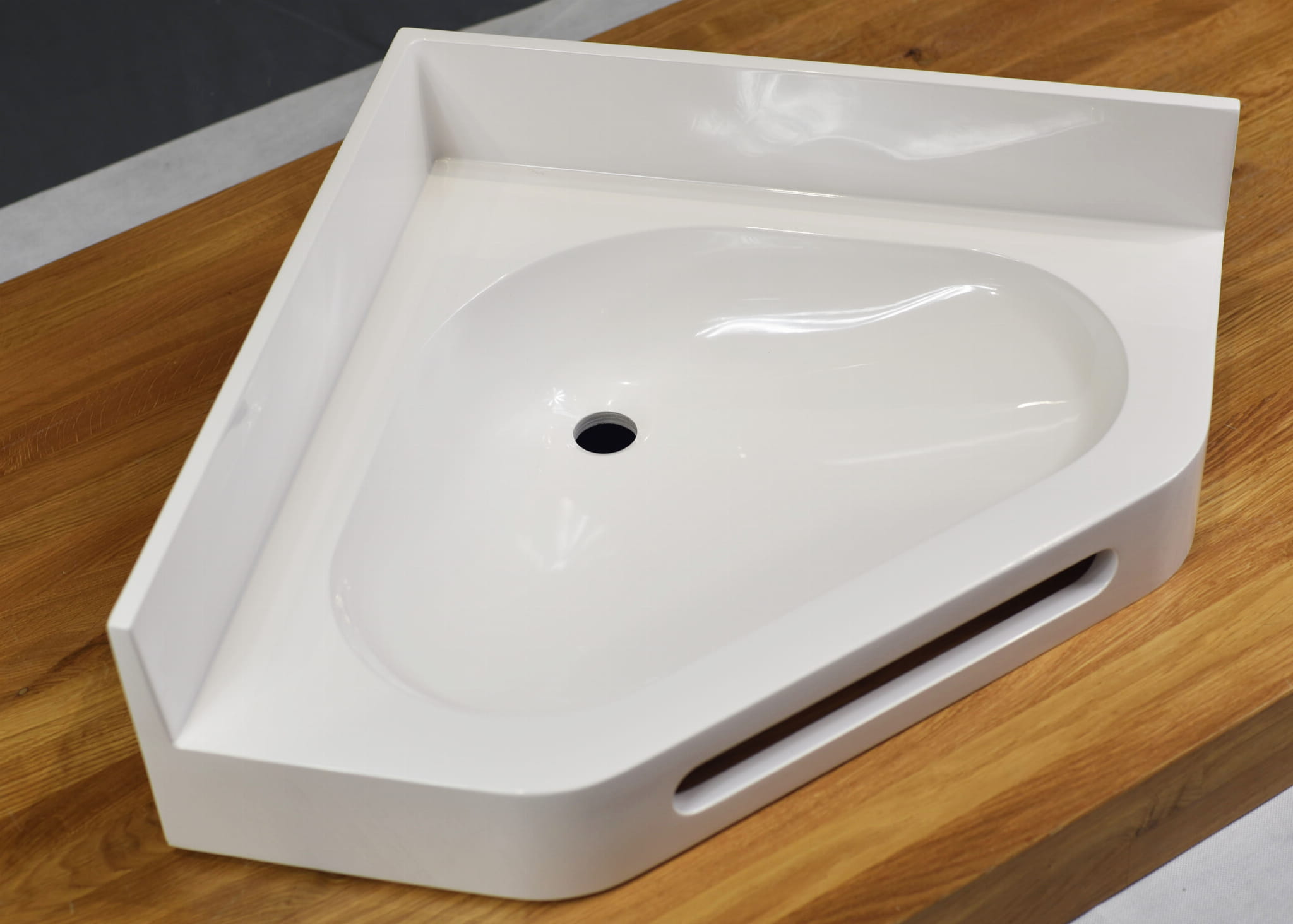 - Centralnie umieszczona nieregularna niecka – wygoda i ergonomia