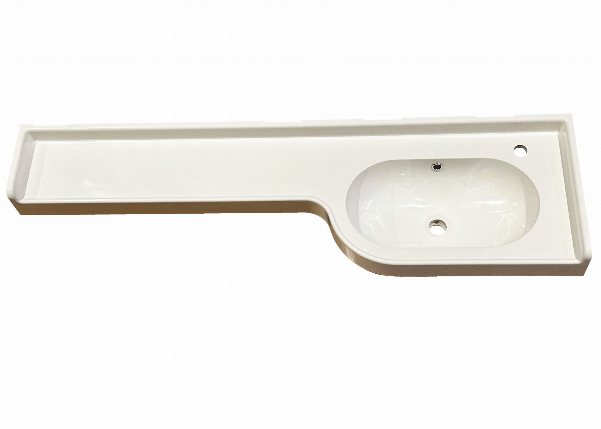Szukasz praktycznej i eleganckiej umywalki narożnej do swojej łazienki? Umywalka narożna biała Marmex 151 cm łączy nowoczesny wygląd, wysoką trwałość i komfort użytkowania. Dzięki centralnie umieszczonej owalnej niecce po prawej stronie oraz dużym gabarytom umywalka idealnie wpasowuje się w narożnik łazienki, tworząc przestrzeń wygodną i estetyczną. Połyskliwa powierzchnia Marmex ułatwia czyszczenie i zapewnia elegancki wygląd na lata.