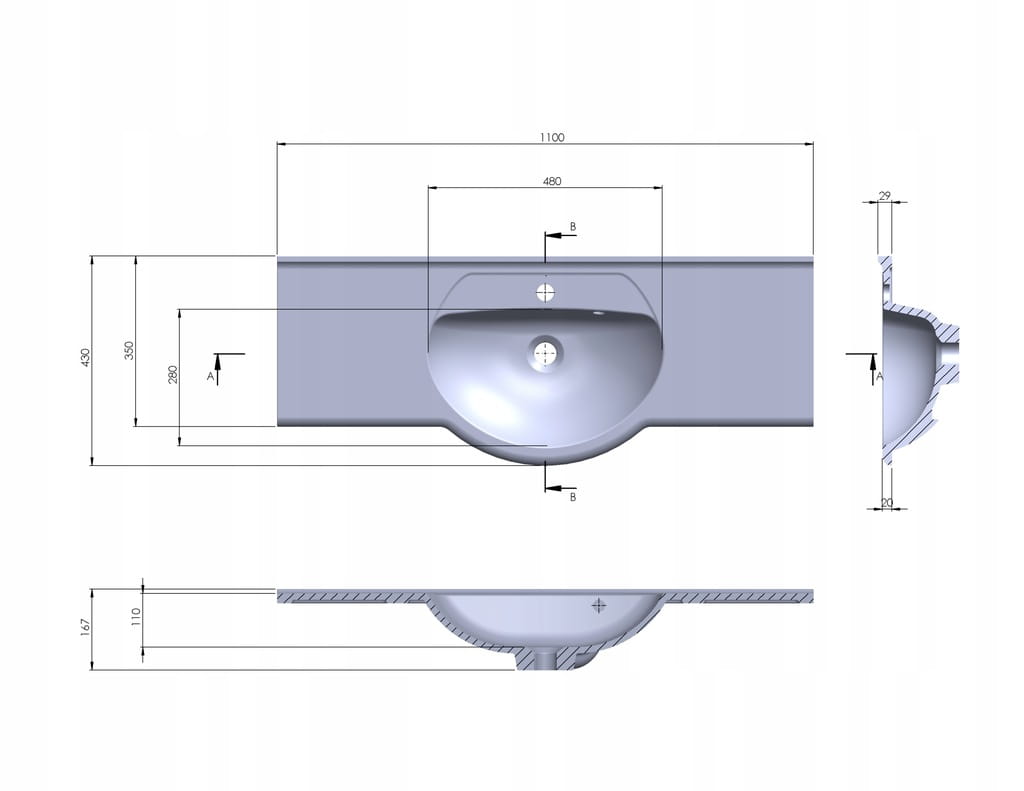 • Głębokość niecki: 110 mm