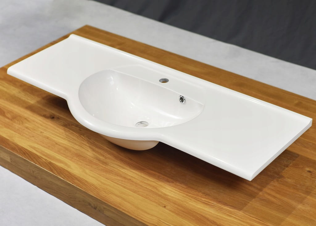 Umywalka półblatowa 110 cm biała Marmex - designerska z blatem i połyskiem